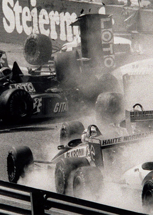 1985 gab es eine Massenkarambolage am Start, daraufhin wurde das Rennen abgebrochen. Nach dem Neustart gewann Alain Prost vor Ayrton Senna, weil in Niki Laudas McLaren der Turbolader streikte. Ein Startopfer war Gerhard Berger. Lauda gab seinen Rücktritt per Saisonende bekannt. (c) APA (Georges Schneider)