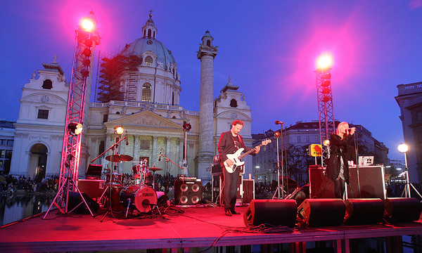 Noch weniger beim Duo HVOB: Sein Elektro-Disco mit Latin-Touch war rhythmisch agil, strahlte aber durchgehend diesen gewissen lauwarmen Optimismus aus, den Barbetreiber schätzen, weil er zum Konsumieren und zum (nicht allzu wilden) Tanzen animiert und zugleich die Gemüter beruhigt. So wirkte er auch vor der Karlskirche.
