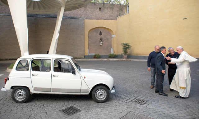 Persönlich zieht Papst Franziskus ein einfacheres Gefährt vor. Zum Beispiel jenen Renault R4, den er nach seinem Aufruf zur automobilen Bescheidenheit vom Priester Don Renzo Zocca geschenkt bekommen hat. Das Auto des Gottesmannes ist zuletzt nutzlos in einer Garage herumgestanden, viel zu schade für einen solch treuen Begleiter: Ein pannenfreies Vierteljahrhundert hat der R4 den Hirten nach seinen Schäfchen sehen lassen. Don Renzo habe damit sogar Drogendealern in seiner Gemeinde nachgestellt. Nun beabsichtige Papst Franziskus, möglichst viele Wege in dem Youngtimer zurückzulegen, wenigstens aber jene auf den 0,44 Quadratkilometern, über die sich der Vatikan-Staat erstreckt.