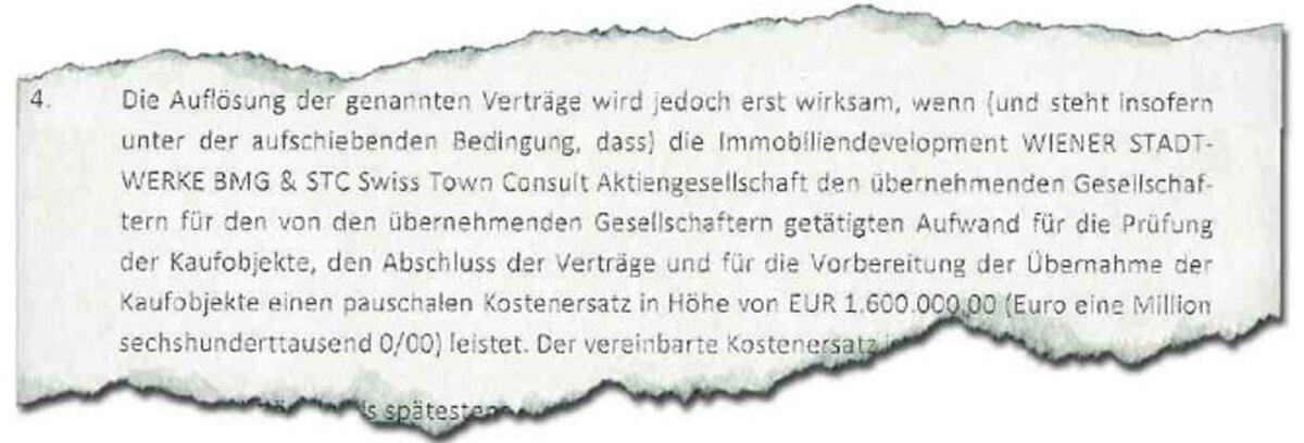 1,6 Mio. Euro Vertragsstrafe, im Text wurde der mildere Ausdruck „Kostenersatz“ formuliert, zahlte die von den Stadtwerken dominierte Errichtergesellschaft, die TownTown AG, dafür, dass die Deutschen von ihrem Kaufrecht zurücktraten. Fällig wurde die Summe aufgrund einer höchst sprunghaften Entscheidung innerhalb des Stadtwerke-Vorstands.