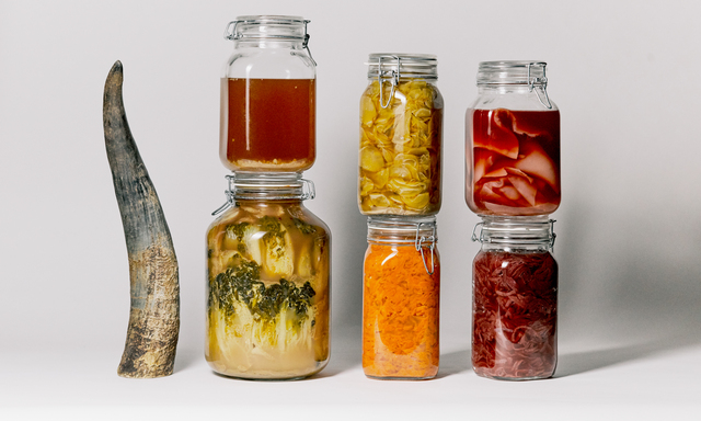 War Cicero ein Japaner? Wenn man Mattia Baroni länger zuhört, könnte man es fast glauben. Immer wieder erzählt er beim Anrichten im Sarntaler Hotel Bad Schörgau vom „garum“, der ubiquitären Sardellen-Sauce der antiken Römer. Doch gleich im Anschluss schwärmt er von den Umami-Noten, die eine Fermentation mit dem Kōji-Pilz in Lebensmitteln wachruft. Die Veränderung der Struktur von Lebensmitteln lässt Glutaminsäure entstehen, die Basis des sogenannten fünften Geschmacks: „Schon die Muttermilch hat viel Umami – und praktisch alle tröstenden Lebensmittel“, so der Südtiroler Alchemist. Der Pilz (Aspergillus oryzae), dem sich auch Sake und Sojasauce verdanken, intensiviert für den Koch praktisch jeden Grundgeschmack. „Salz hingegen macht nichts komplexer, es packt nur den Geschmack ,salzig‘ drauf.“