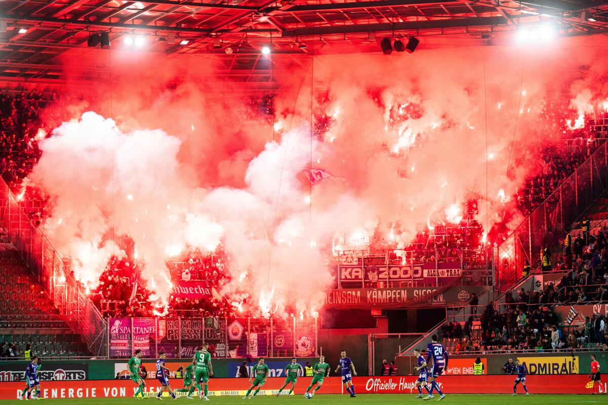 Davor hatten am Montag Bewegtbilder von Geschäftsführer Steffen Hofmann die Runde gemacht, in denen dieser deftig gegen den Stadtrivalen der Wiener Austria austeilt. Nun sah sich Grün-Weiß ein weiteres Mal genötigt, an die Öffentlichkeit zu treten. „Das Präsidium des SK Rapid verurteilt die jüngsten homophoben Äußerungen (...) auf das Schärfste“, hieß es in einer Mitteilung des Wiener Clubs.
