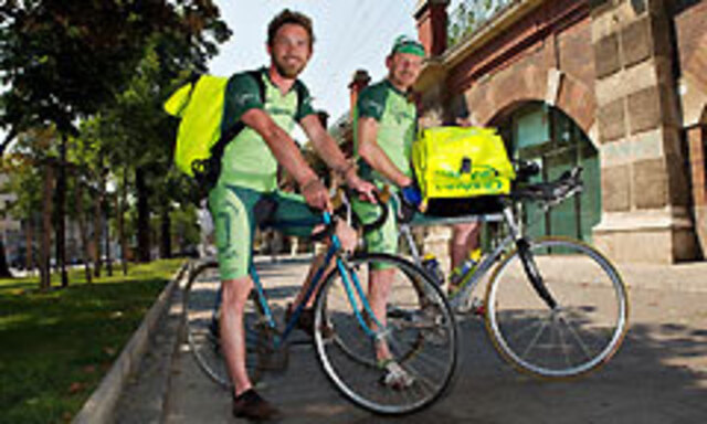 WIEN. Sie bringen Pakete und eilige Briefe. Sie flitzen zu Stoßzeiten schneller durch die Stadt als ein Ferrari und sind aus dem Wiener Stadtbild nicht mehr wegzudenken: die Fahrradboten. Seit neuestem sind sie auch als radelnde Plakatflächen zu mieten – eine Idee von Neutor. Ursprünglich war die Agentur ein Kunde von Veloce – der Botendienst erledigte Sendungen, überbrachte DCs. Dann kam die Initialzündung: „Wir dachten, den gelben Rucksack der Veloce-Boten kennt man – warum aber sollte nur der Rucksack einheitlich sein?“, erzählt Roland Regnemer von Neutor.