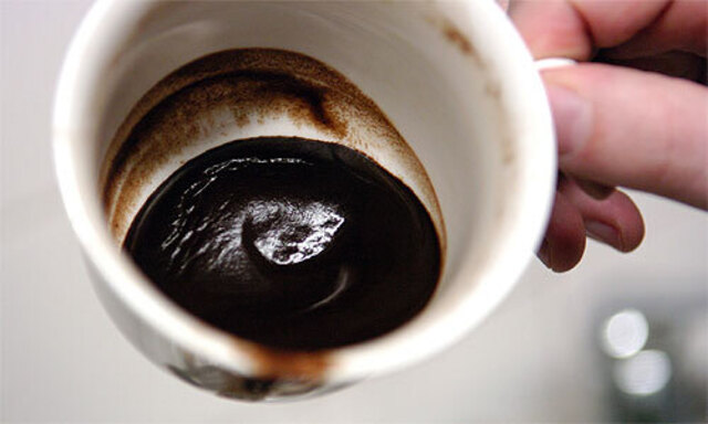 2Einführung: Welcher Kaffee muss verwendet werden?Nespresso hat keine Zukunft. Diese Aussage kann man in Bezug auf die Kaffeesudleserei stehen lassen. Denn die bunten Tabs hinterlassen in der Kaffeetasse nicht eine Spur von Sud, sondern lassen nur die braune Flüssigkeit durch. Auch Filterkaffee ist nicht geeignet, so wie auch aus der French-Press kein verwertbares Material in die Tasse gelangt. Einzige zukunftsträchtige Methode ist die türkische (auch arabische, griechische, armenische,...) Art der Zubereitung, bei der besonders fein gemahlener Kaffee mit Wasser (nach Belieben mit Zucker) in einer Kanne aus Kupfer oder Messing, die „Cezve“ oder „Ibrik“ genannt wird, aufgekocht und ohne Filterung direkt in die Tasse gegossen wird.