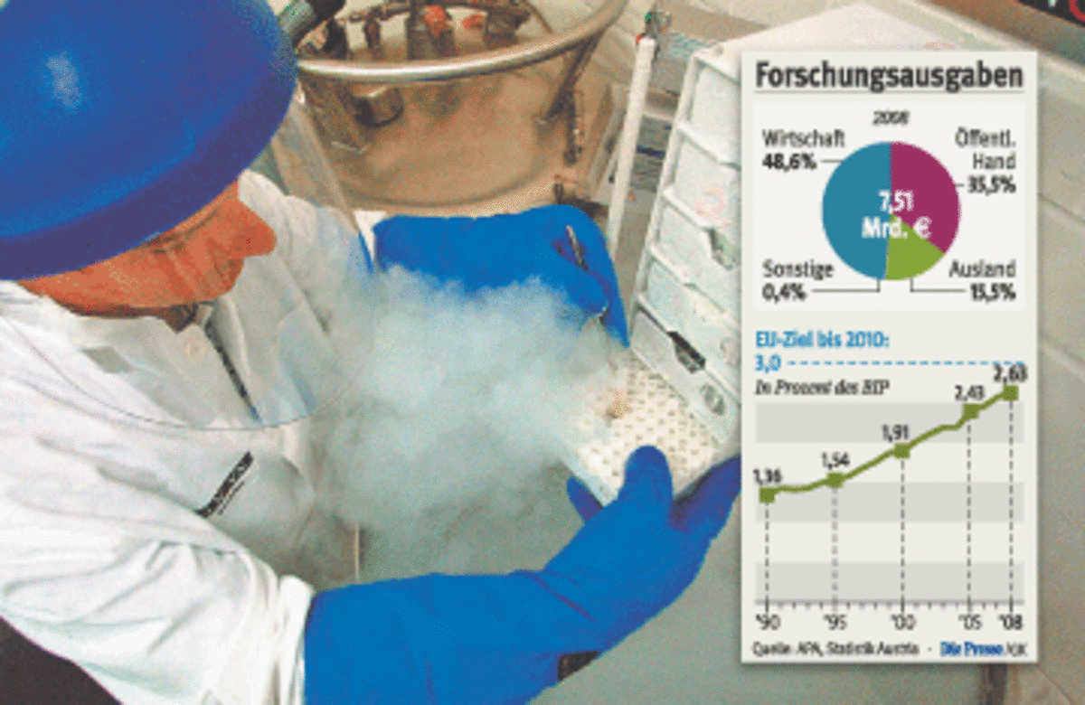 Österreich ist mit dem starken Zuwachs bei den Forschungsausgaben in der EU eher die Ausnahme. 1995 lag Österreich mit einer Forschungsquote von 1,54 Prozent noch unter dem EU-Durchschnitt. Seither geht es steil bergauf. Die gesamteuropäische Forschungsquote lag 2006 – die jüngste verfügbare Vergleichszahl – bei 1,84 Prozent. Das Drei-Prozent-Ziel der EU für das Jahr 2010 ist illusorisch, weil die die Quote in europäischen Schwergewichten wie Frankreich oder Deutschland kaum zulegt.