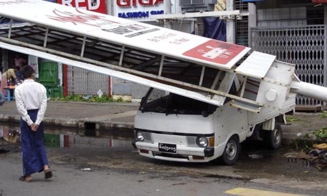 Hunderttausende Menschen sind durch den verheerenden Zyklon obdachlos. Er war am Samstag mit Windgeschwindigkeiten von 200 Kilometern in der Stunde über die Südküste hereingebrochen. Straßen und Brücken wurden zerstört, in Rangun wurden Strommasten umgerissen, Bäume lagen entwurzelt auf den Straßen.