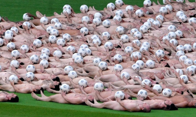 Sechseinhalb Stunden inszenierte der Künstler Spencer Tunick bloße Körper im Stadion. 1840 Menschen hielten still.