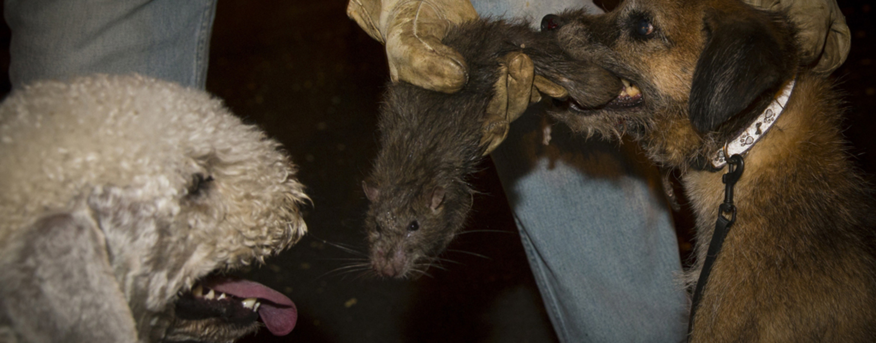 Die kleineren Hunde treiben die Ratten aus ihren Verstecken.