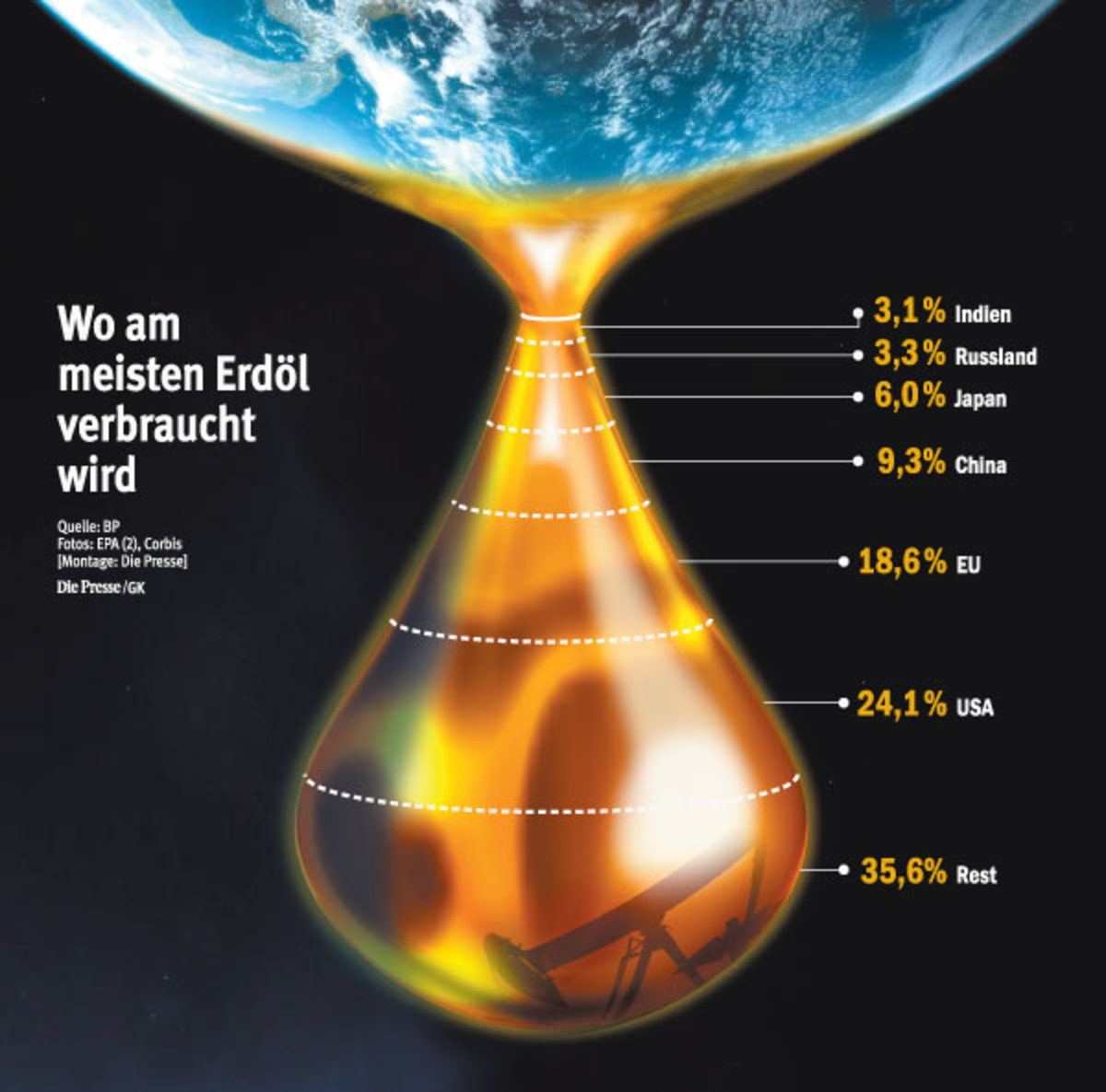 4. Wer verdient in erster Linie an den hohen Preisen?Es bewahrheitet sich eine alte Weisheit: Wer ein Ölfeld hat, wird reich. Ölkonzerne, die in der Förderung stark sind, verdienen deshalb besonders gut an den hohen Preisen. Exxon, BP und Shell können sich über Rekordgewinne freuen. Auch die heimische OMV erzielte im Vorjahr mit fast 1,6 Milliarden Euro Gewinn ihr fünftes Rekordjahr in Folge. Noch größere Profite als die internationalen Öl-Multis erzielen aber zunehmend die staatlichen Ölgesellschaften von Ländern wie Saudiarabien, Russland, Venezuela oder dem Iran.