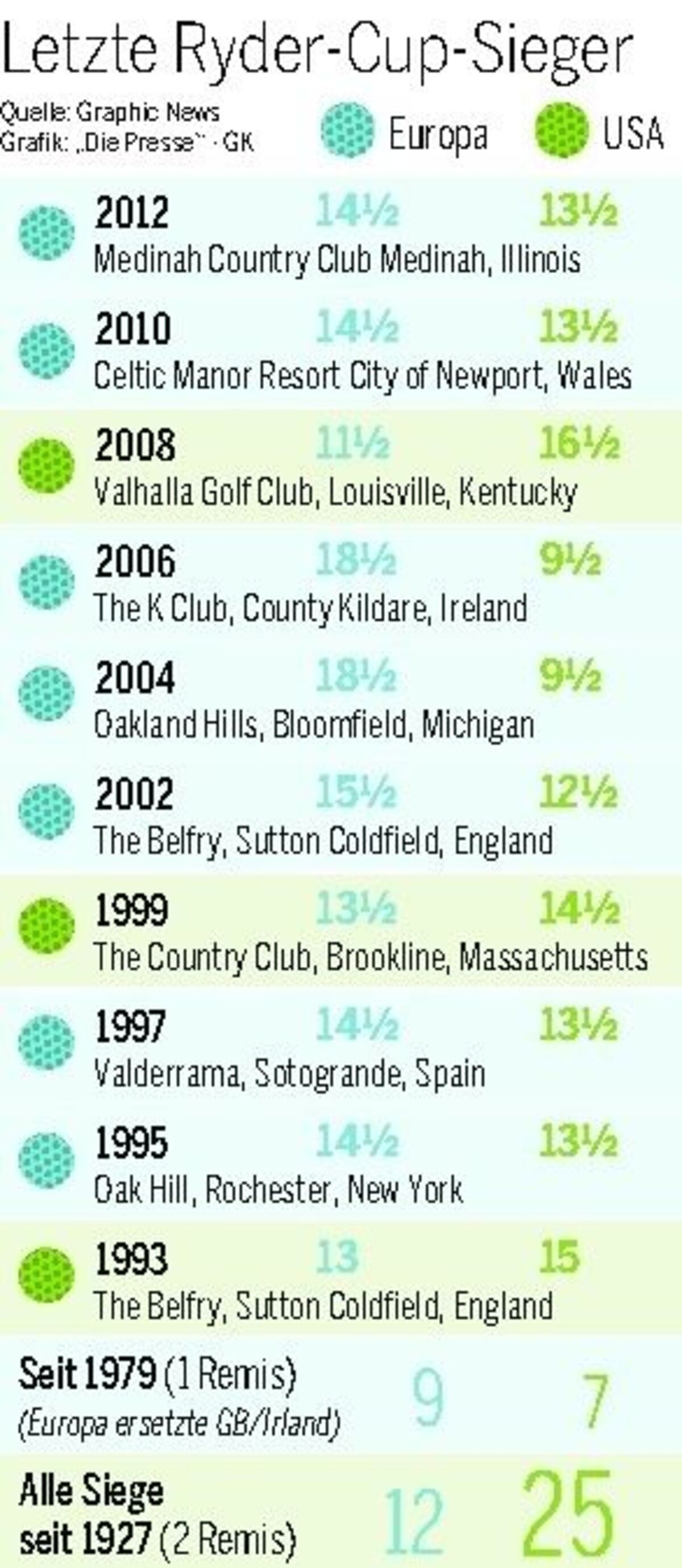 Europa hat von den letzten neun Auflagen sieben gewonnen. Die USA warten seit 1993 auf einen Auswärtssieg.