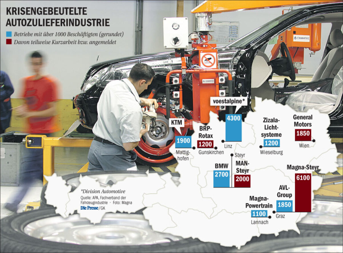 ■In Österreich wird ab Februar jeder zehnte Beschäftigte in der Autozulieferindustrie in Kurzarbeit sein. Das Arbeitsmarktservice subventioniert den Lohnausfall. Heuer dürfte der Staat 70 Mio. Euro zuschießen. Kurzarbeit soll auf bis zu 18 Monate ausgedehnt werden können.