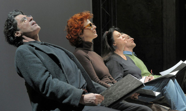Bernhard aber verarbeitete seinen Zorn über die Naziverbrecher und ihre Nachkommen von 1978 bis 1981 in sieben Dramoletten. Die sind von „Der deutsche Mittagstisch“ bis „Freispruch“ von hoher Präzision und auch noch immer beängstigend aktuell. Im Burgtheater-Kasino kamen am Dienstag und Mittwoch die giftigen Döschen, die von 1987 bis 1999 höchst erfolgreich an verschiedensten Häusern gespielt wurden, zur Wiederaufführung. Zwölf Burgtheater-Stars zelebrierten in szenischer Lesung ein Hochamt Bernhard'scher Boshaftigkeit.