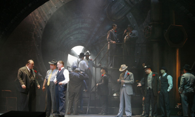 Robert Meyer, als Volksoperndirektor gern Zugpferd in „seinem“ Haus, wirkt mit seiner orgelnden Burgschauspieler-Stimme die meiste Zeit extrem unecht. Wenn man sich an Frank Sinatra (1915–1998) und seine Boys mit ihren in den Nacken geschobenen Hüten in verrauchten Hinterzimmern beim Pokern erinnert, stehen einem bei diesem ebenso bemühten wie angestrengten Nachstellen verflossener Zeiten immer wieder fürchterlich die Haare zu Berge.