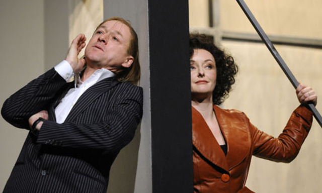 Höchste Konzentration ist aber bei Botho Strauß geboten. Hier wird ein Zeitalter seziert. Bald öffnet sich die Drehbühne, wie auf einem großen Zylinder rollt der Film ab.