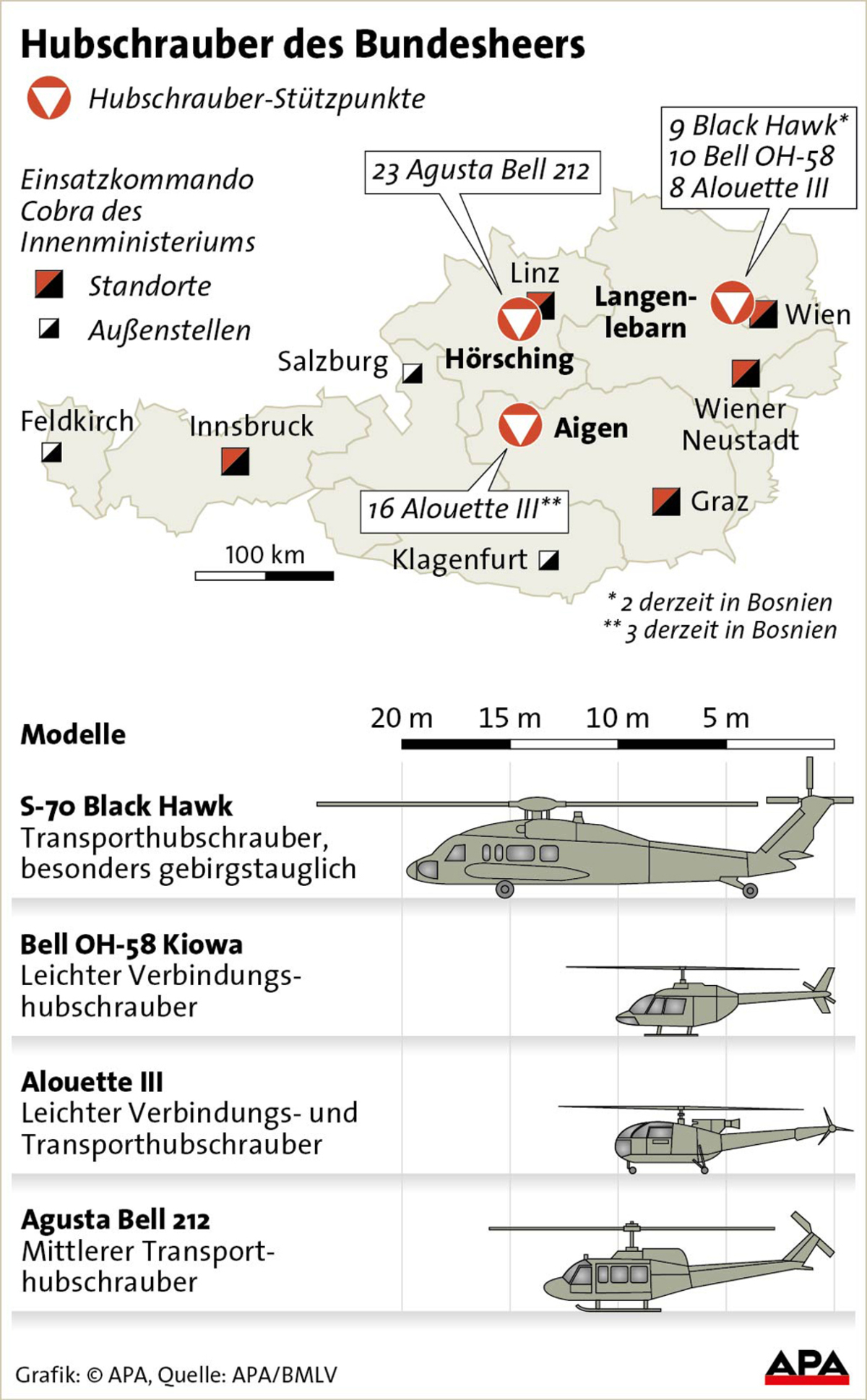 Die europaweite Ausschreibung für die neuen Hubschrauber wird laut Mikl-Leitner allerdings nicht vor 2016 passieren. Darauf angesprochen, dass es laut Bundesheer zwei Jahre dauert, bis neue Hubschrauber angeschafft und einsatzbereit sind, und was das für die akute Terrorgefahr bedeute, betonte die Innenministerin, dass schon jetzt Hubschrauber der Polizei an den Cobra-Standorten Wiener Neustadt und Innsbruck für den Ernstfall bereitstünden.