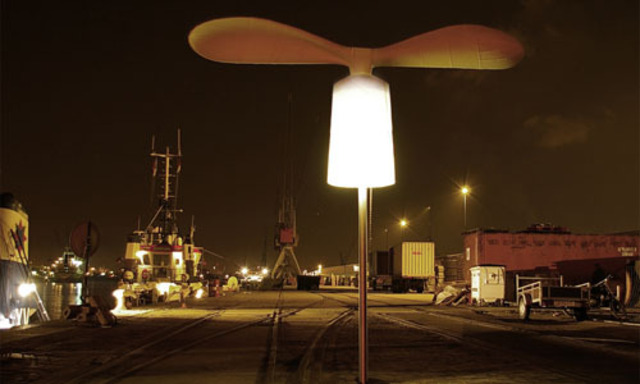 Die Zukunft. An eine bessere erinnern demakersvan zum Beispiel mit ihrem Light Wind, einem sprichwörtlichen Windlicht, einer Straßenlaterne mit großem Propeller obendrauf, der den Strom für diese eine, autarke Beleuchtungszelle liefert. Schaut skurril aus wie aus einem Comic, funktioniert aber.