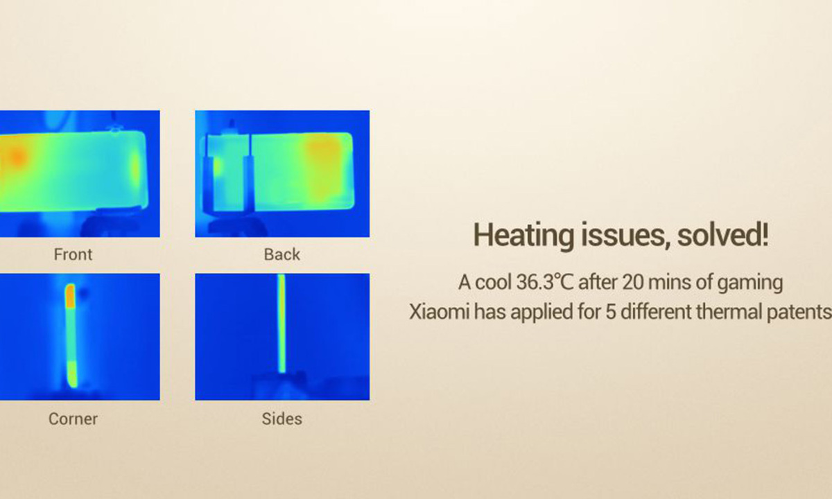 Für die nötige Geschwindigkeit sorgt ein Snapdragon 810 von Qualcomm, dem zur Seite stehen vier Gigabyte RAM. Ob Xiaomi es besser hinbekommt als HTC beim One M9 bleibt abzuwarten. Beide Hersteller verwenden den Prozessor. Das HTC-Gerät neigt aber dazu sehr schnell sehr heiß zu werden. Xiaomi verspricht, dass man hier die nötige Vorarbeit geleistet hat. Auch nach 20-minütigem Spielen von grafisch aufwändigen Spielen soll die Temperatur nicht 36 Grad übersteigen. Dafür greift Xiaomi auf über fünf verschiedene Patente zurück.