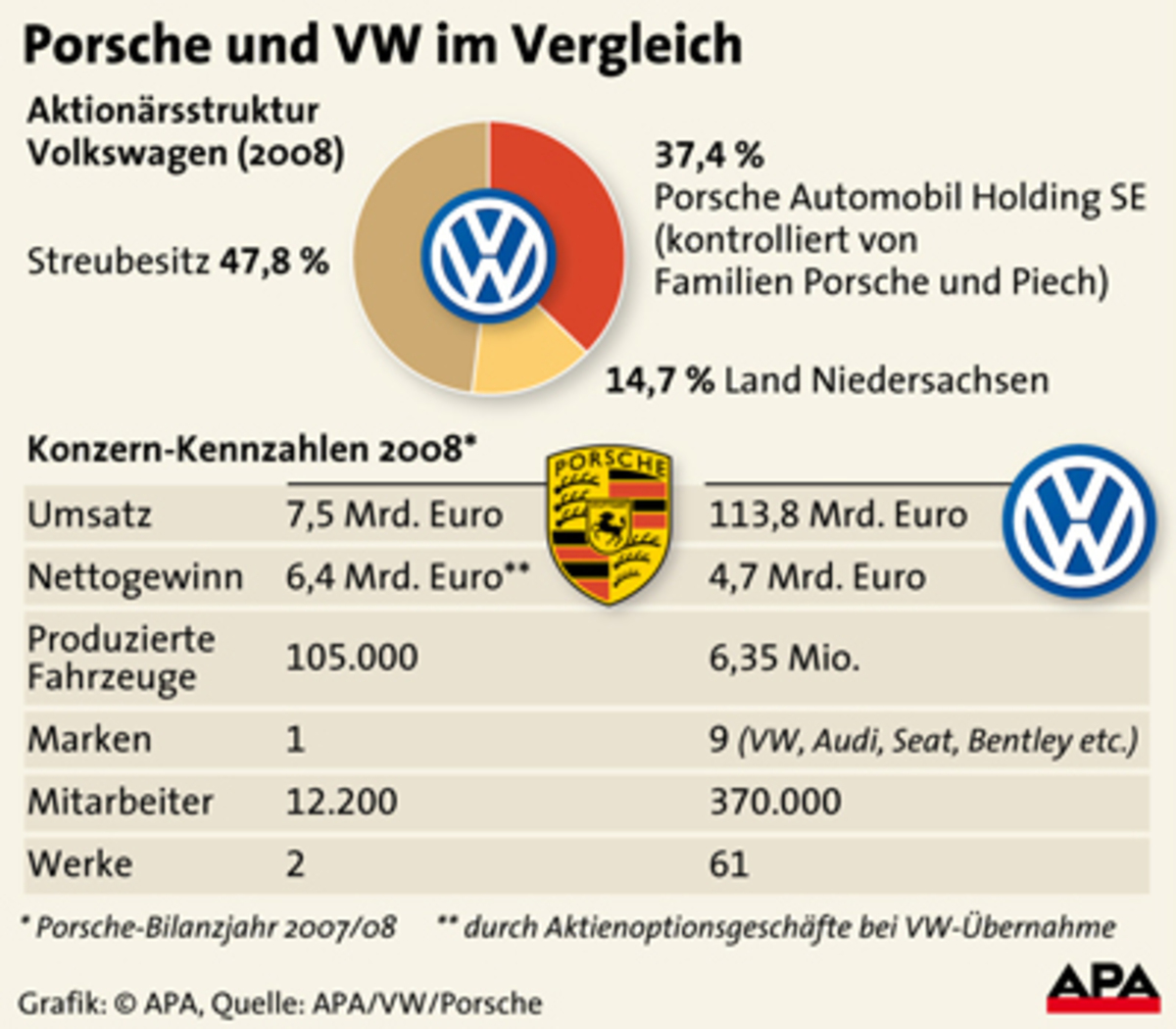Doch VW-Aufsichtsratschef Ferdinand Piëch bevorzugt ein Gegenkonzept, wonach der VW-Konzern das Autogeschäft von Porsche um rund elf Milliarden Euro kaufen soll. Die Porsche-Holding wäre damit auf einen Schlag schuldenfrei - das Machtzentrum würde allerdings bei VW in Wolfsburg liegen. Experten räumen diesem Modell gute Chancen ein.
