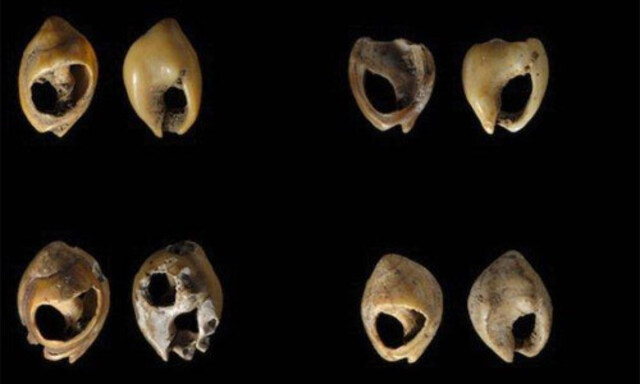 Dann kam die nächste Fundstätte, in der marokkanischen Grotte des Pigeons gab es auch „beads“ – aus den gleichen Schneckenhäusern wie in Südafrika und im Nahen Osten –, sie wurden vor 82.000 Jahren gefertigt. Offenbar hatte das Tradition, Richard Barton (Oxford) hat nun in dieser Höhle „beads“ entdeckt, die mindestens 110.000 Jahre alt sind. Sie sind unzweifelhaft Schmuckstücke, man sammelte sie am über 40 Kilometer entfernten Meer, bohrte Löcher hinein, zog Fäden durch und hängte sie um. Darauf deuten Abschabespuren, darauf deutet auch Rötel, möglicherweise kam er von gefärbter Kleidung oder Haut auf den Schmuck: „Der Fund zeigt, dass die Herstellung von ,beads‘ in verschiedenen Kulturen entwickelt wurde“, erklärt Barton: „Und er bestätigt, dass es Menschen mit modernem symbolischem Verhalten sehr früh an beiden Enden des Kontinents gegeben hat.“ (Quaterny Science Reviews, in press)