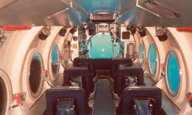 Maurice Immelman heißt die fünf Passagiere beim Tauchgang willkommen, und gleich wendet er sich den Sicherheitsbestimmungen zu. Wie im Flugzeug. Nur ausführlicher. Nur, dass mir in diesem U-Boot das Herz bis zum Hals schlägt. Liegt es am Einstieg durch das Loch im Dach, am Klettern über die dünne Sprossenleiter? Das Innere des U-Boots erinnert an das einer Propellermaschine – nur ist hinter den Bullaugen kein Himmel zu sehen, sondern hellblaues Wasser. Maurice Immelman erklärt, wie hoch der Druck sein wird. Plötzlich deutet er auf mich: „Falls ich aus irgendeinem Grund bewusstlos werden sollte – oder sterben – und der Funkkontakt zum Mutterschiff oben fällt aus, dann haben Sie diesen Hebel. Sehen Sie ihn?“ Ich nicke. „Der Hebel heißt auftauchen. Den ziehen Sie in einem solchen Fall nach oben“, sagt er und löst das U-Boot mit einem Ruck vom Mutterschiff.