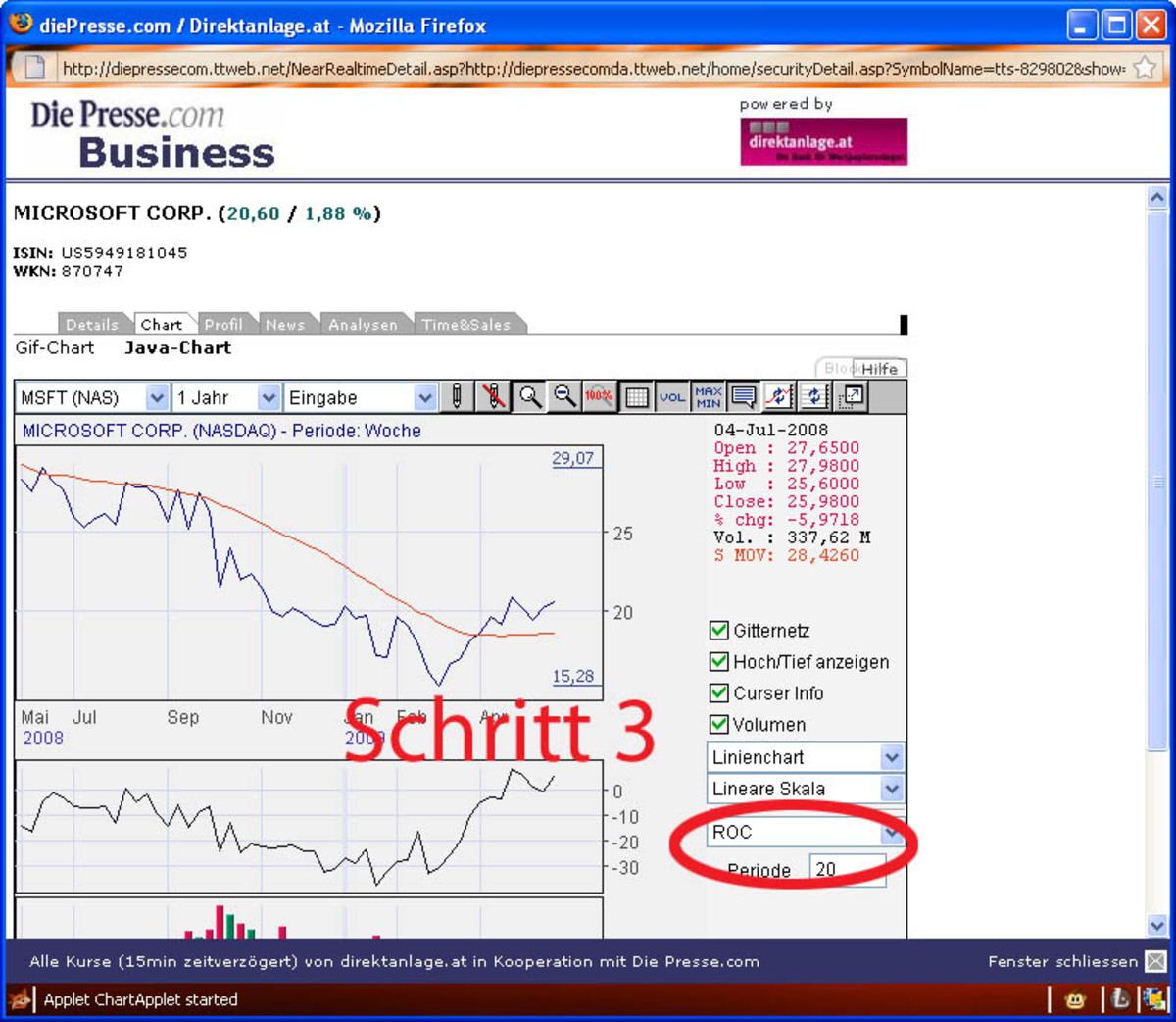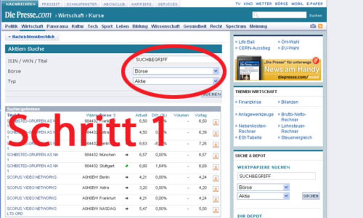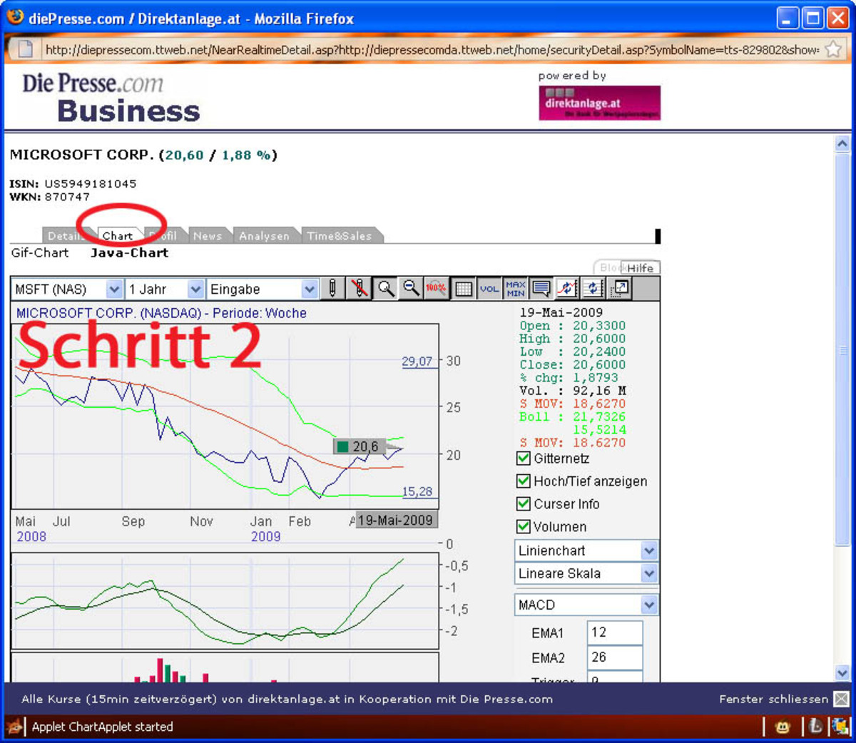 Alle Anlagewerkzeuge finden Sie gratis auf den Börseseiten von "DiePresse.com". Geben Sie einfach das gewünschte Wertpapier bei der "Suche" ein, klicken Sie in der Ansicht des Wertpapiers auf den Karteireiter "Chart" und wählen sie rechts unten einen "Indikator" aus.