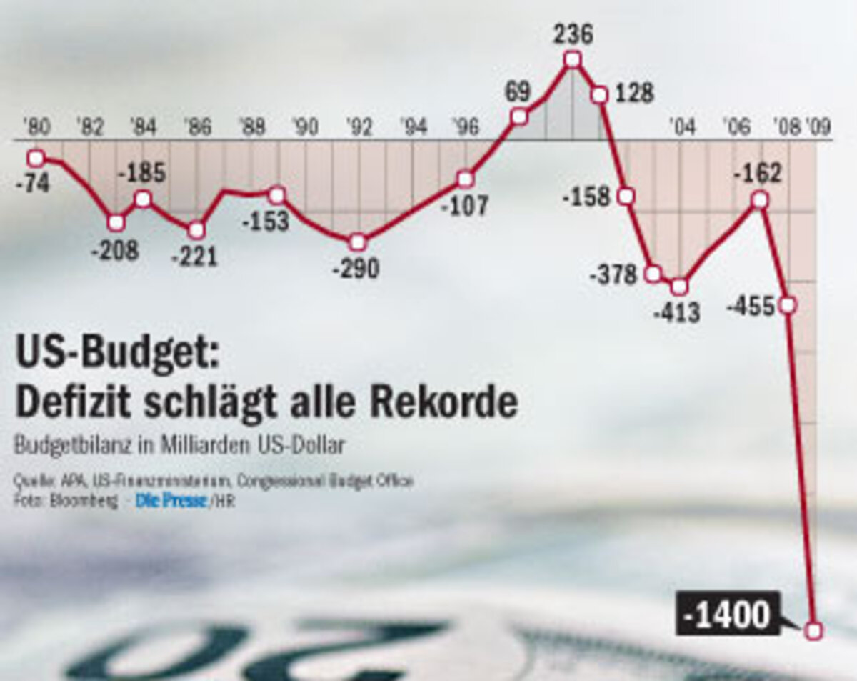 ■Das Budgetdefizit der USA wird sich heuer verdreifachen und mit 1400 Mrd. Dollar (das sind 9,9 Prozent des US-Bruttoinlandsprodukts) den höchsten Wert seit dem Zweiten Weltkrieg erreichen. Die Finanzierung der Gesundheitsreform von Präsident Obama beginnt damit zu wackeln.