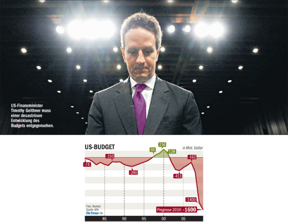 Nach 1,4 Billionen Dollar im Vorjahr wird sich 2010 das exorbitante Schuldenloch der USA noch weiter ausweiten, wie aus dem Budgetentwurf des Weißen Hauses hervorgeht. Die Supermacht steht inzwischen mit 12,5 Billionen Dollar in der Kreide und muss sich von China, dem größten Kreditgeber und zugleich schärfsten Konkurrenten, harsche Ordnungsrufe gefallen lassen.