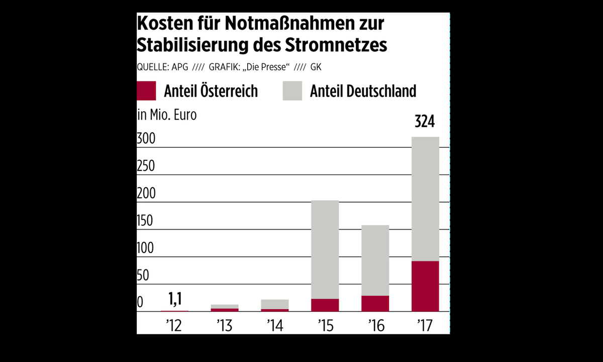 An 301 Tagen musste die APG im vergangenen Jahr Feuerwehr spielen, weil Österreich mehr Elektrizität gekauft hatte, als über die vorhandenen Leitungen ins Land kommen konnte. Um diese Importlücke auszugleichen und das Netz in Balance zu halten, kaufte der Netzbetreiber kurzfristig große Strommengen von Österreichs Pumpspeicher-, Gas- und Kohlekraftwerken. Die Kosten für diese Redispatch-Maßnahmen beliefen sich 2017 auf 324 Millionen Euro. Das ist das Dreifache von 2016 und 300 Mal mehr als noch vor fünf Jahren. Zwar trug Deutschland zuletzt zwei Drittel der Kosten, „aber das Problem verschiebt sich zusehends nach Österreich“, warnt Christiner.