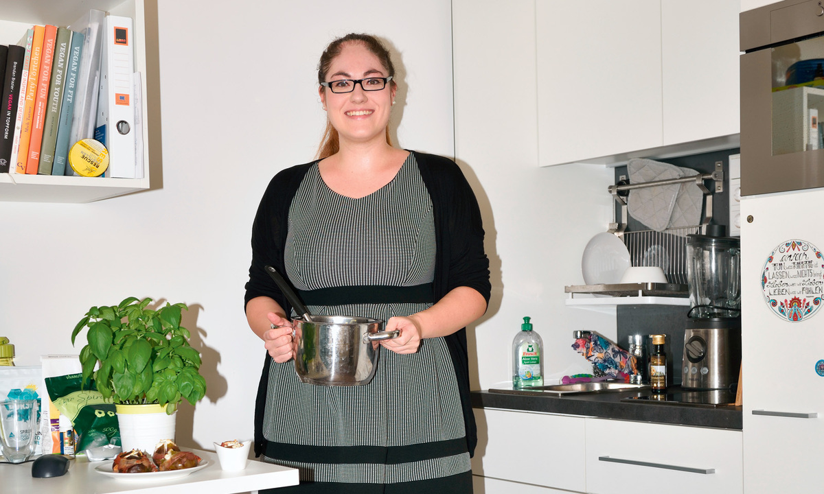 Die Küche von Anne-Sophie ist auf den ersten Blick vor allem eines: klein, sehr klein. Was paradox ist, denn die 24-Jährige kocht gerne. Und überraschenderweise funktioniert das in ihrem winzigen Studentenapartment im zweiten Bezirk sehr gut. „Ich mag meine Küche gerne“, sagt sie. „Es gibt zwar nur zwei Herdplatten – aber die sind Induktionsplatten und daher sehr fix.“ Aktuell steht da gerade eine Kürbissuppe, außerdem Feigen mit Ziegenkäse und Prosciutto, die sie eben aus dem kleinen Backofen unterm Schreibtisch geholt hat, den sie dort über dem Drucker installiert hat. „Ohne Backofen geht für mich gar nichts“, sagt Anne-Sophie. Wenn sie nicht gerade Kuchen für Freunde bäckt, kocht die Psychologiestudentin gern größere Mengen, Suppen oder Gemüseeintöpfe etwa, die ein paar Tage im Kühlschrank halten. Die gibt es dann eben mehrmals hintereinander. Macht nichts: „Mir ist lieber, ich koche selbst, als essen zu gehen – das ist günstiger und ich weiß, was drin ist“, sagt sie. „Außerdem finde ich es entspannend, zu kochen. Der Prozess ist einfach was Schönes.“