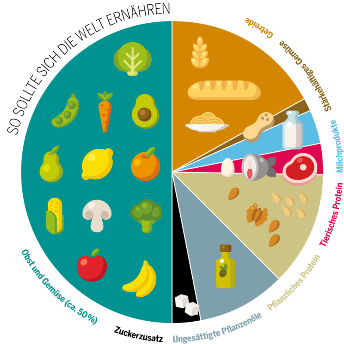 37 Forscher aus 16 Ländern haben in einer Studie Richtlinien für eine Ernährung definiert, die zehn Milliarden Menschen gesund versorgen kann und gleichzeitig die Erde schützt. Sie plädieren dafür, den Konsum von rotem Fleisch und Zucker drastisch zu reduzieren. Gleichzeitig sollte der tägliche Speiseplan zur Hälfte aus Obst und Gemüse bestehen, die andere Hälfte überwiegend aus Vollkornprodukten, Nüssen und Hülsenfrüchten. Fleisch, Fisch und Eier sind in kleinen Mengen erlaubt.