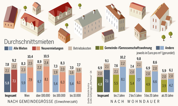Im Vergleich zu vor fünf Jahren stieg der Preis für ein Einfamilienhaus in Graz um ein Viertel, in der Stadt Salzburg um ein Drittel, in Wien um die Hälfte und verdoppelte sich in Innsbruck und Kitzbühel. Über ganz Österreich gerechnet haben sich Einfamilienhäuser um 30,6 Prozent verteuert.