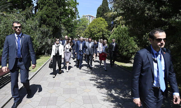 Sotschi. Der Ort bildete den perfekten Hintergrund zum beschaulichen Charakter des Treffens: Vögel zwitscherten in der Parkanlage mit gepflegtem Rasen, ein Springbrunnen plätscherte, und eine von Palmen gesäumte Treppe führte hinab zum Schwarzen Meer, das verheißungsvoll blau glitzerte. Nur die über das Gelände verteilten Männer in dunklen Anzügen und mit Headsets im Ohr passten nicht in die Szenerie.