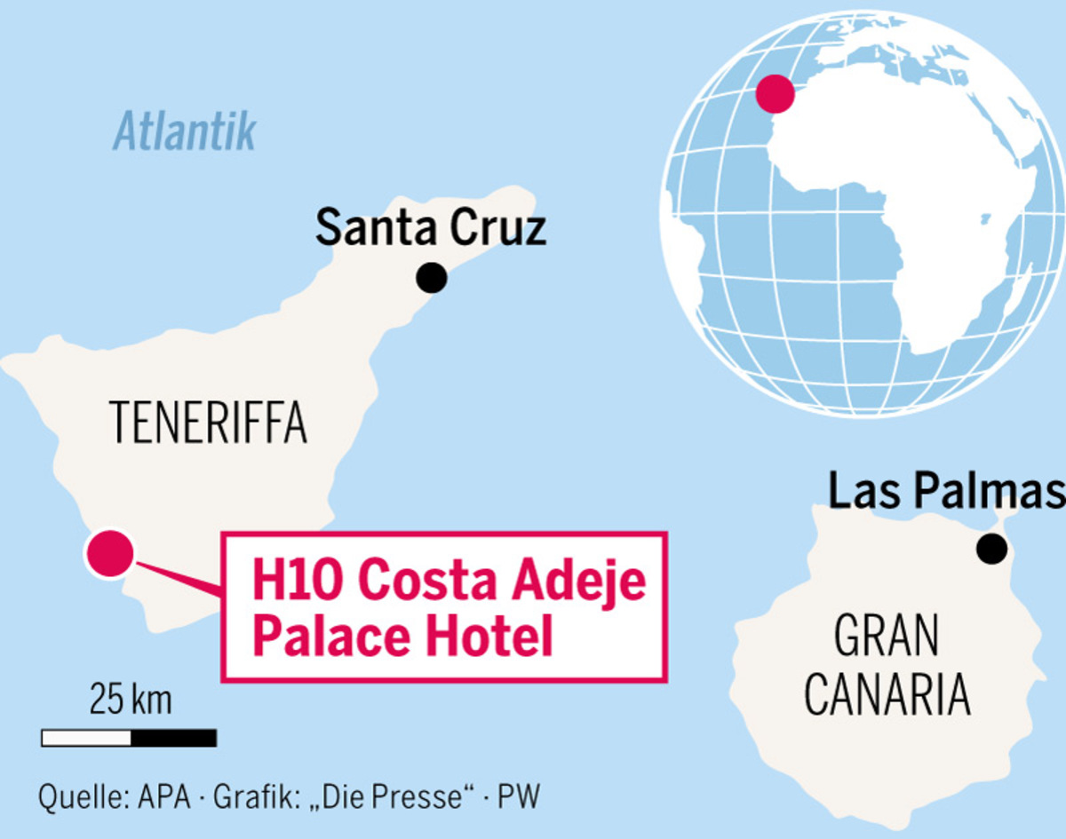 Santa Cruz/Wien. Rund tausend Hotelgäste sitzen auf der Urlauberinsel Teneriffa in einem Vier-Sterne-Hotel fest, unter ihnen sind mindestens zehn Österreicher. „Aktuell haben wir zehn Österreicher, die über TUI gebucht haben“, sagt die Pressesprecherin des Reiseveranstalters, Kathrin Limpel, zur „Presse“. Doch vermutlich halten sich noch mehr Gäste aus Österreich in der Hotelanlage im Süden der Kanaren-Insel auf.