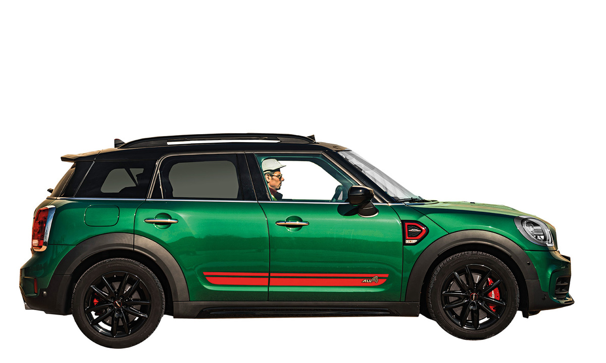 wir reflexartig alte Mini-Maßstäbe an. Der Countryman, mit einem Gewicht schon klar über den eineinhalb Tonnen, ist eher der Familie als der Sonderprüfung zugeneigt. Und: So sehr die PS-Zahlen auch in die Höhe schießen, so sehr verlängert der immer verzweigtere technische Komplex aus Turbolader, Regelsystemen, Getriebesteuerung, Allradantrieb und Abgasreinigung die Ansprechzeit. Die Spritzigkeit eines Ur-Mini Cooper S, davon haben wir uns schon ein weites Stück entfernt. Dafür gibt es Platz, Sicherheit, Komfort und eine lustige Lackierung, die Straßenbild wie Laune aufhellt. Kostet aber extra, gell.