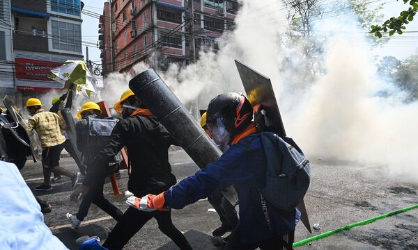 In rund einem halben Dutzend weiteren Städten kam es ebenfalls zu Demonstrationen, auch in der größten Stadt Yangon. In der Stadt Lashio im Norden des südostasiatischen Landes ging die Polizei mit Tränengas und Blendgranaten gegen Demonstranten vor, wie Live-Bilder auf Facebook zeigten.