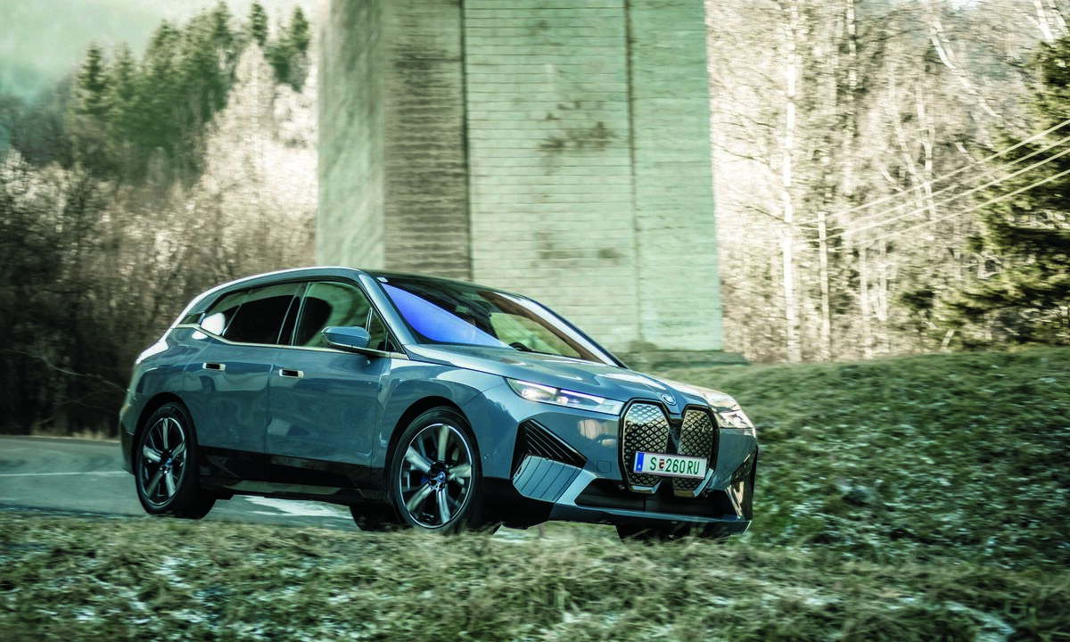 Ein Bauteil, das der BMW iX naturgemäß nicht benötigt. Statt Endrohre zieren sein Heck Schürzen und Spoiler, die den Fahrtwind versöhnlich stimmen sollen: Ein fünf Meter langes SUV, dessen Front aufragt wie eine Schrankwand, hat aerodynamisch einiges gutzumachen. Dass der iX auf einer eigenen Plattform steht, also kein direktes Derivat etwa des X5 ist, muss als Besonderheit gelten. Alle anderen BEVs der Marke können antriebsseitig beide Welten bedienen, mit Verbrenner, als Plug-in oder reiner Elektriker. So ist der iX als Showcase zu sehen, was BMW auf dem Gebiet alles kann. Mit seiner nur mittelgroßen Batterie (71 kWh netto) stellt der xDrive40 zwar keine Reichweitenrekorde auf; speziell auf der Autobahn sieht man das Energiereservoir rasch dahinschwinden.
