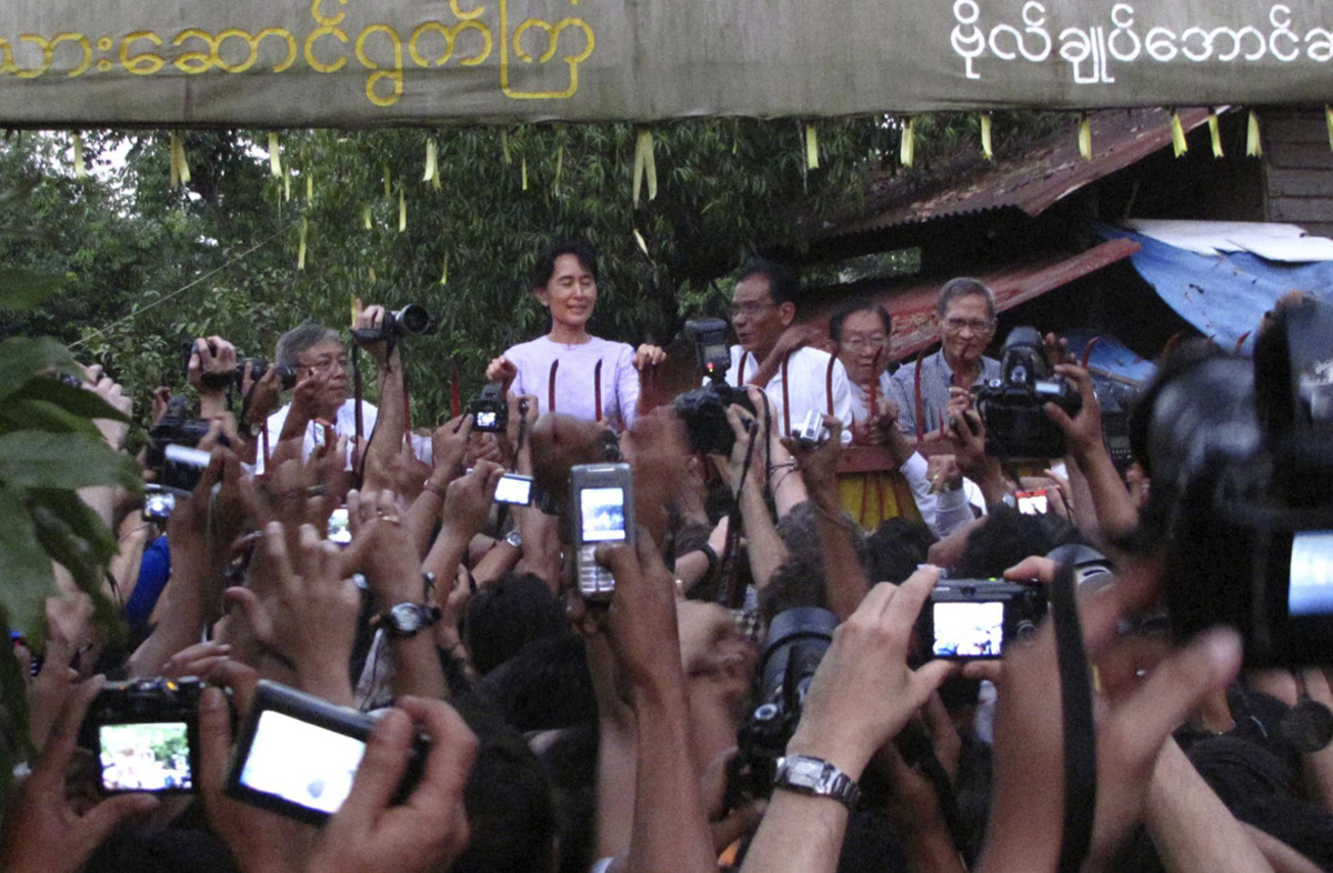 Für ihr demokratisches Engagement hat Aung San Suu Kyi im Jahr 1991 den Friedensnobelpreis erhalten.Auf den nächsten Bildern: Jubel in Rangun über das Ende des Hausarrests.