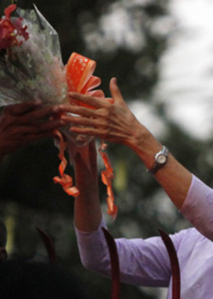 2008: Die Junta weigert sich zunächst, Hilfe für die Opfer des verheerenden Wirbelsturms "Nargis" hereinzulassen. Sie legt einen Verfassungsentwurf vor, der die Macht des Militärs absichern soll. Über den Text wird ungeachtet der Zyklon-Katastrophe ein Plebiszit abgehalten. Suu Kyis Hausarrest wird von den Machthabern verlängert.