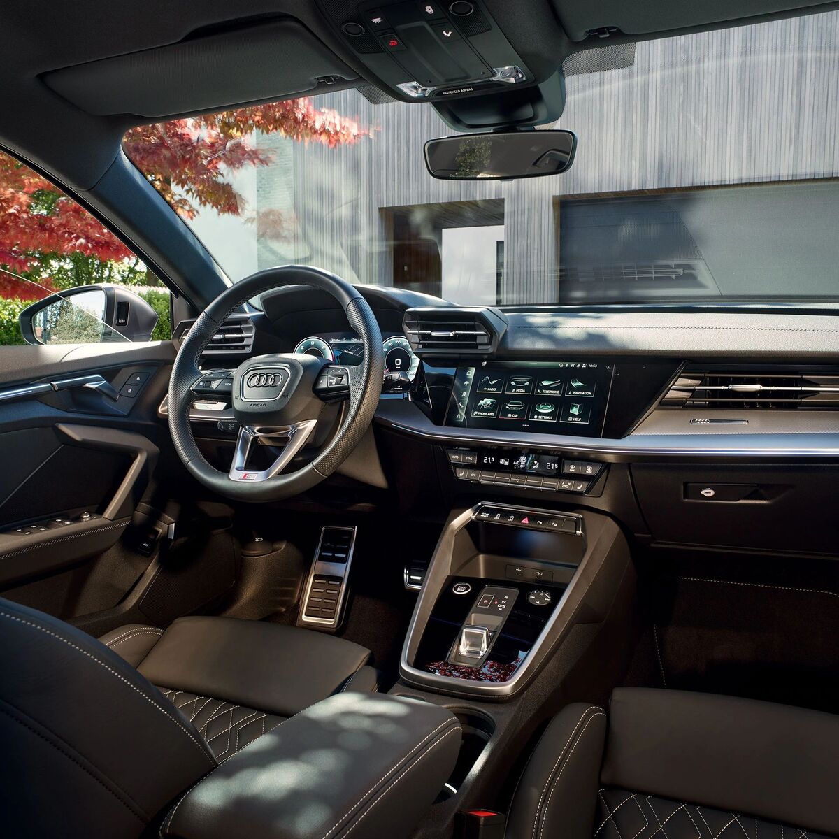 Technisch hochwertig ist auch der Innenraum der Audi A3 Sportback- und A3 Limousinen-Modelle ausgestattet. So sorgen sechs Passivlautsprecher mit einer Gesamtleistung von 80 Watt samt geschwindigkeitsabhängiger Anpassung der Lautstärke und digitalem Radioempfang für den perfekten Sound im Wageninneren. Mittels der Bluetooth-Schnittstelle verbinden sich Smartphones einfach mit dem Fahrzeug und erlauben unter anderem das Freisprechen und Bluetooth-Audiostreaming. Das digitale Armaturenbrett (10,25 Zoll) zeigt dem Fahrer neben essentiellen Fahrzeugdaten den aktuellen Musiksender samt Musiktitel an. Das MMI Radio-plus-Farbdisplay mit einer Größe von 10,1 Zoll und MMI touch-Bedienung ist in der Mitte zwischen Fahrer- und Beifahrersitz eingebaut. Das Audi connect Notruf & Service setzt im Fall eines schweren Unfalls automatisch einen Notruf ab, bei einer Panne wird eine Sprachverbindung zu Audi Hilfe aufgebaut und oft kann eine rasche Lösung gefunden werden. In der Nichtraucherausführung befindet sich im Audi A3 Sportback und in den A3 Limousinen eine 12-Volt-Steckdose in der vorderen Mittelkonsole – zusätzlich zu jener im Fond.