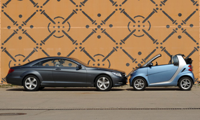 Zweierlei Luxuriöses aus dem Hause Daimler. Während sich der Mercedes CL locker mit Bentley misst, verwöhnt das Smart Cabrio mit Parkplätzen, wo immer man sie braucht.