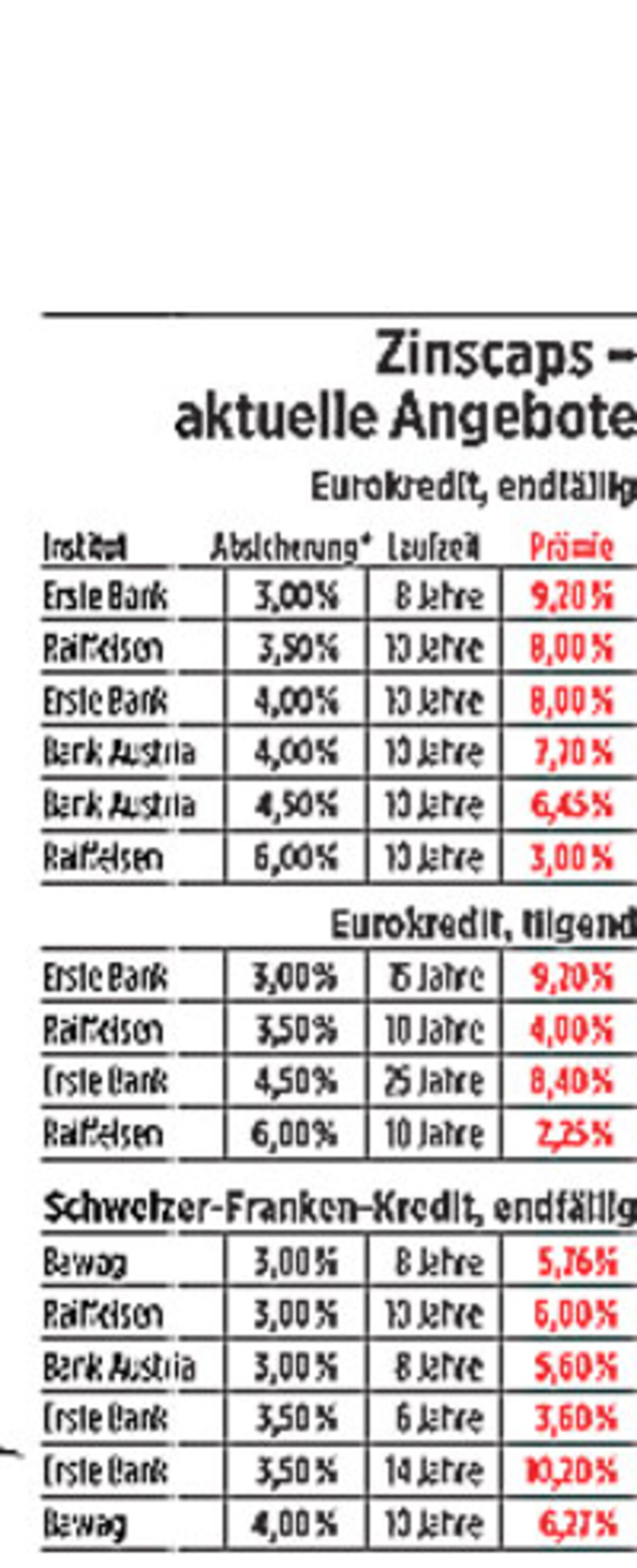 Bei der Raiffeisen kostet der entsprechende Zinscap 8000 Euro. Man hat also 8000 Euro aufgewendet und sich danach nur 3400 Euro an Zinsen erspart. Man liegt mit 4600 Euro im Minus.