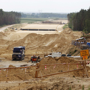 China sollte Polens wichtigste Autobahn bis zur Euro 2012 bauen. Doch die Strecke zwischen Warschau und Berlin wird zu spät fertig. Auch das Alpine-Stadion verzögert sich.