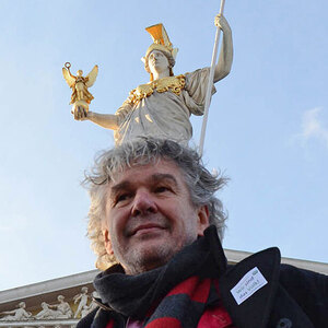 Schuhproduzent Heini Staudinger und seine Anhänger machten im und vor dem Parlament Stimmung für ein alternatives Finanzierungsmodell.
