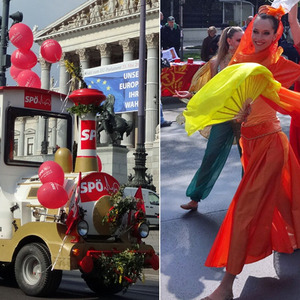 ''Wir wollen ein Europa ohne FPÖ und Rechtspopulisten'': Die SPÖ schlägt am Tag der Arbeit Wahlkampftöne an. Dazu gibt's rote Nelken und orientalische Gewänder.
