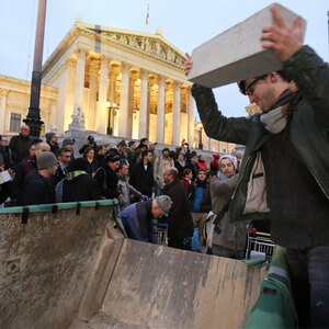 Am Donnerstag wurde nicht nur die Hypo Alpe Adria als Bank begraben. Auch die "Milliardenstadt Hypotopia" am Wiener Karlsplatz wurde abgebaut - begleitet von einer Protestaktion.